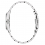Женские кварцевые часы. Центральные часовая, минутная и секундная стрелки. Синий циферблат украшен бриллиантами в местах часовых меток. Круглый корпус выполнен из нержавеющей стали. Диаметр корпуса составляет 31 мм, толщина 8 мм. Стальной браслет шириной 16 мм, раскладывающаяся застежка. Прочное минеральное стекло устойчивое к мелким механическим повреждениям. Водостойкость WR 30 (брызги).
