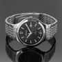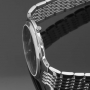 Мужские кварцевые часы. Калибр механизма ETA F06. Центральные часовая, минутная и секундная стрелки. Апертура даты в позиции 3 часов. Черный циферблат. Круглый корпус выполнен из нержавеющей стали. Диаметр корпуса составляет 42 мм, толщина 7 мм. Стальной браслет, раскладывающаяся застежка. Устойчивое к возникновению царапин сапфировое стекло. Водостойкость WR 50 (мытье рук, дождь). Вес примерно 115 гр.