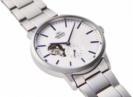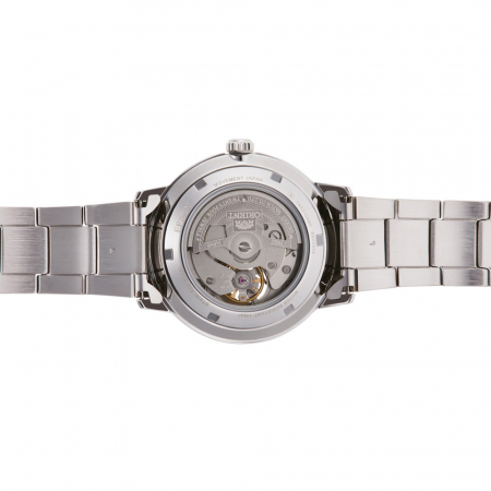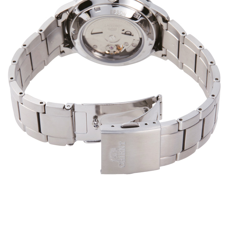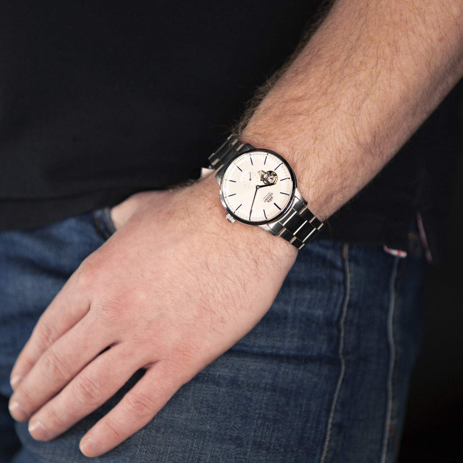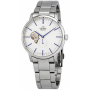 Механические часы с автоподзаводом. Открытый баланс хода. Водостойкость WR 100. Запас хода на 40 часов. Центральные часовая и минутная стрелки. Секундная стрелка вынесена на отдельный циферблат. Серебристый циферблат с часовыми индексами в виде штрихов. Корпус выполнен из нержавеющей стали. Диаметр корпуса 40 мм. Устойчивое к мелким механическим повреждениям минеральное стекло. Браслет выполнен из нержавеющей стали. Раскладывающаяся застежка.