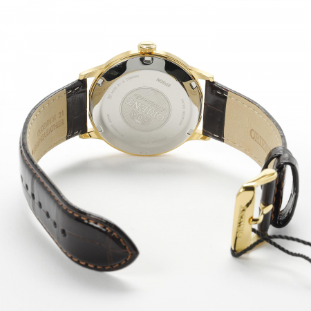 Механические часы с автоподзаводом. Возможность ручного завода. Функция остановки секундной стрелки. Водостойкость WR 30. Индикация числа. Корпус выполнен из нержавеющей стали с IP покрытием. Диаметр корпуса 40.5 мм, толщина 11.8 мм. Кожаный ремешок.