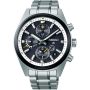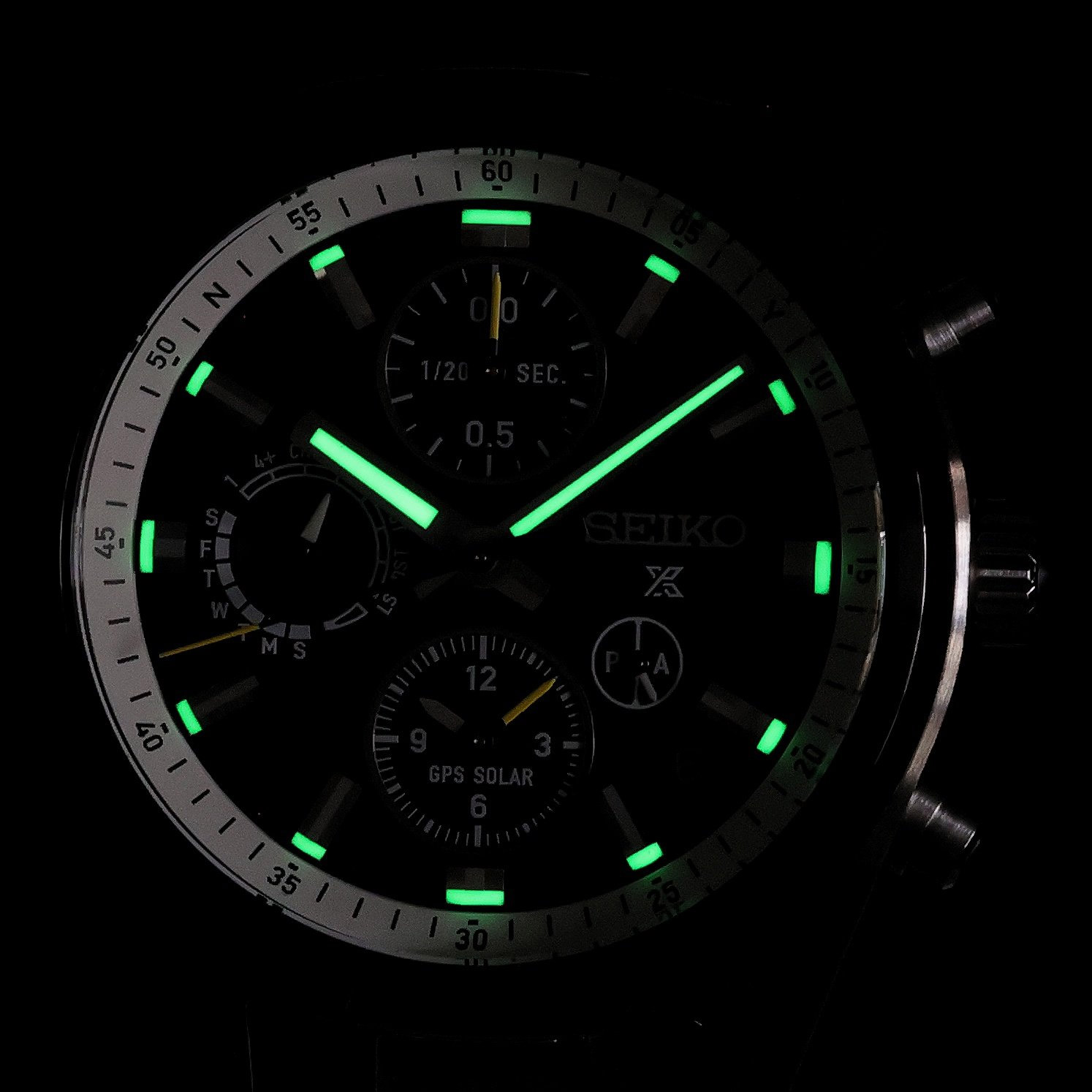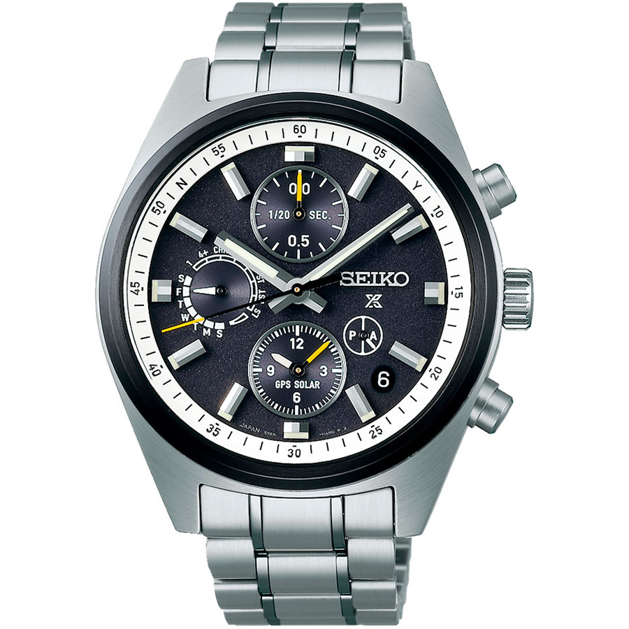 Мужские кварцевые часы на солнечной батарее. Калибр механизма 5X83. Запас хода 6 месяцев в обычном режиме, в режиме энергосбережения до 2 лет. Точность хода +-15 секунд в месяц. Функция предотвращения перезарядки. Индикатор запаса хода. Функция приема сигнала GPS (настройка часового пояса, автоматическая настройка времени). Функция секундомера. Вечный календарь до 2100 года. Функция мирового времени (38 часовых зон). Второй часовой пояс. Функция перемещения стрелок. Центральные часовая, минутная и секундная стрелки. Индикация даты и дня недели. Черный циферблат. Люминесцентное покрытие на стрелках и часовых индексах. Круглый корпус выполнен из нержавеющей стали. Размер корпуса составляет 42 х 49,6 мм, толщина 12,9 мм. Стальной браслет шириной 20 мм, тройная раскладывающаяся застежка. Устойчивое к возникновению царапин сапфировое стекло. Водостойкость WR 100 (плавание без погружения). Вес 156 г.