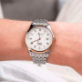 Кварцевые часы. Водостойкость WR 50 (мытье рук, дождь). Часы, минуты, секунды. Индикация даты и дня недели. Циферблат с часовыми индексами в виде цифр. Корпус выполнен из нержавеющей стали. Диаметр корпуса 40 мм, толщина 8 мм. Устойчивое к возникновению мелких механических повреждений сапфировое стекло. Браслет выполнен из нержавеющей стали.