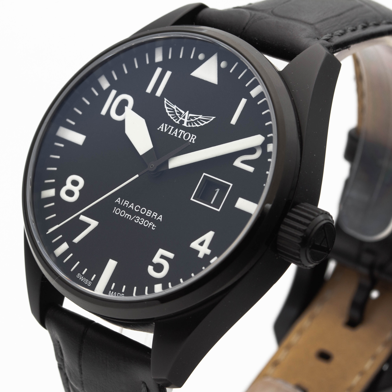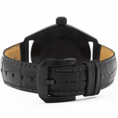 Кварцевые часы. Корпус выполнен из нержавеющей стали с PVD покрытием черного цвета. Черный циферблат с центральной секундной стрелкой. Индикация даты в позиции трех часов. Сапфировое стекло с антибликовым покрытием. Кожаный ремешок черного цвета.
