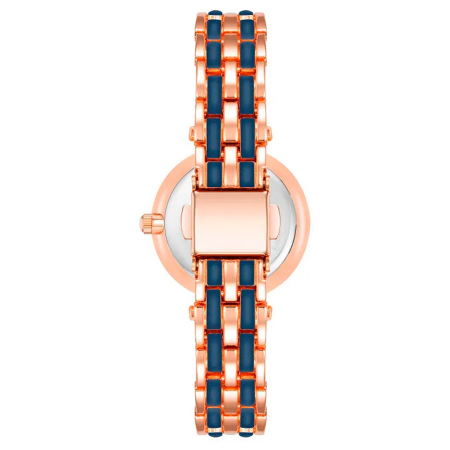 Кварцевые часы. Водостойкость WR 30. Центральные часовая, минутная и секундная стрелки. Синий циферблат с часовыми индексами в виде штрихов. Корпус выполнен из металла с PVD покрытием. Диаметр корпуса 30 мм. Прочное минеральное стекло устойчивое к мелким механическим повреждениям. Браслет выполнен из металла с PVD покрытием.