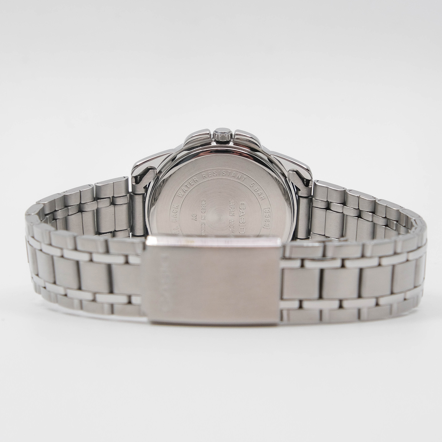 Индикация числа. Люминесцентные стрелки и метки. Раскладывающаяся застежка, расстегиваемая одним касанием. Корпус и браслет из нержавеющей стали. Размер: 36,5 x 33,1 x 8,8 мм. Вес: 73 г.