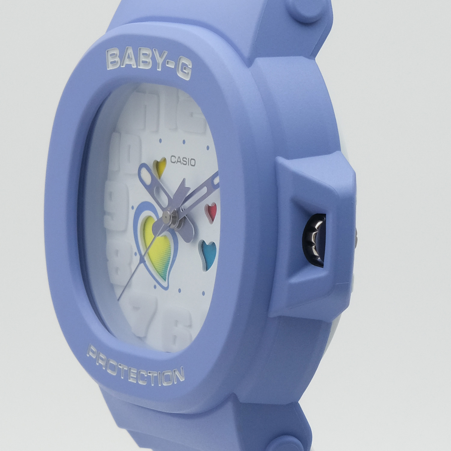 Casio Baby-G BGA-10-6A — это женские часы с аналогово-цифровым дисплеем, выполненные в синем цвете с декоративными элементами в виде сердец. Модель оснащена кварцевым механизмом и обладает водостойкостью до 100 метров, что делает её подходящей для повседневного использования и лёгких водных активностей.