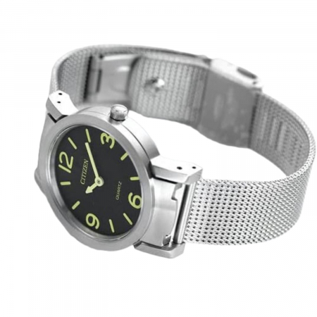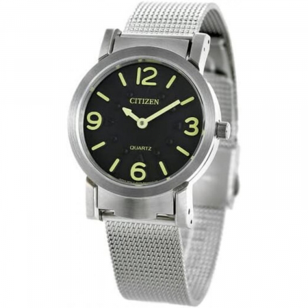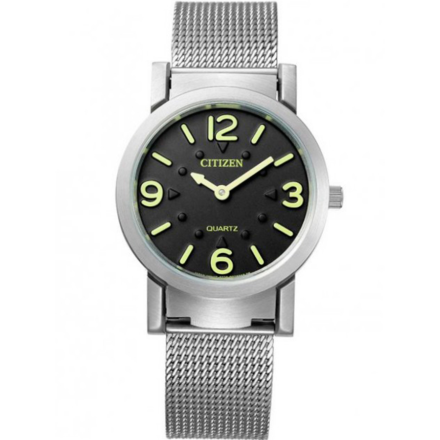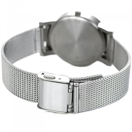Кварцевые часы. Водостойкость WR 30. Центральные часовая и минутная стрелки. Циферблат с часовыми индексами в виде штрихов и цифр. Стрелки и метки с люминесцентным покрытием. Корпус выполнен из нержавеющей стали. Диаметр корпуса 35 мм. Устойчивое к возникновению мелких механических повреждений минеральное стекло. Браслет миланского плетения, выполнен из нержавеющей стали.